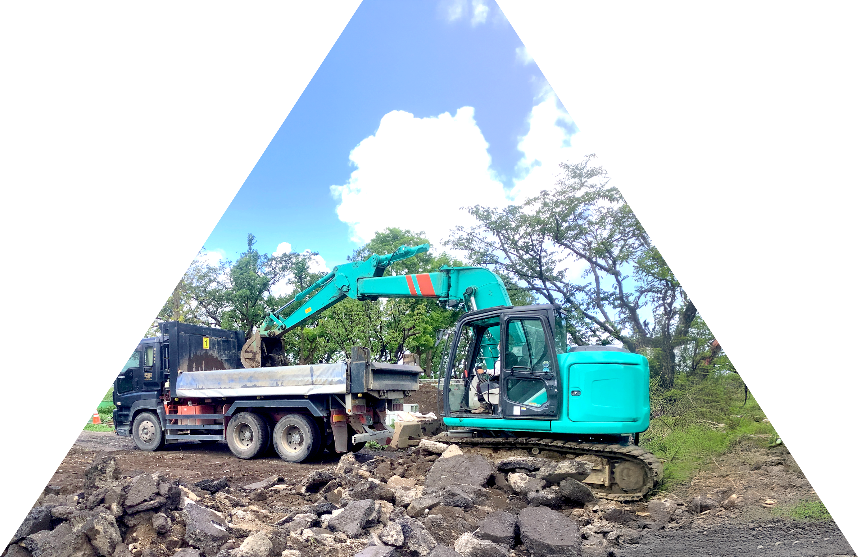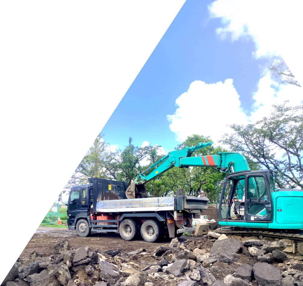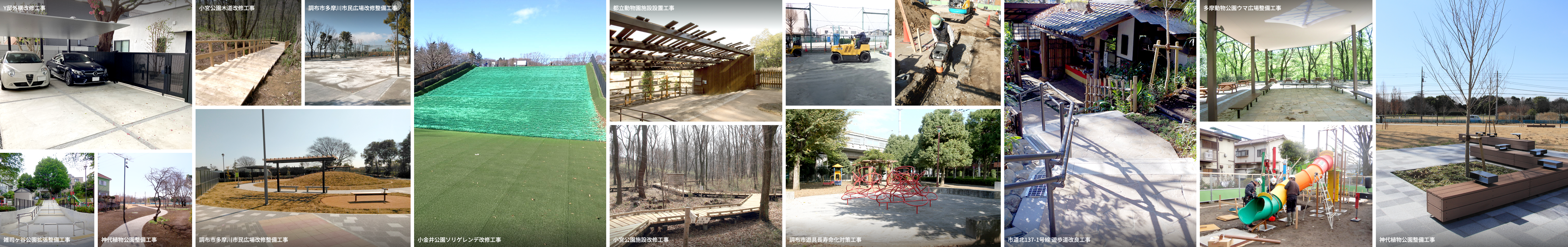 外構・景観デザインは公共施設・商業施設、個人邸が主な仕事となりますが、規模はさまざま。フェンスの設置や植栽の仕事、重機を駆使してブロック・擁壁を構築する仕事のほか、公園の景観を丸ごとつくる仕事になると、これらに加えて電気や水道などに携わる業者とチームを組み、公園のすべてをつくり込んでいきます。
